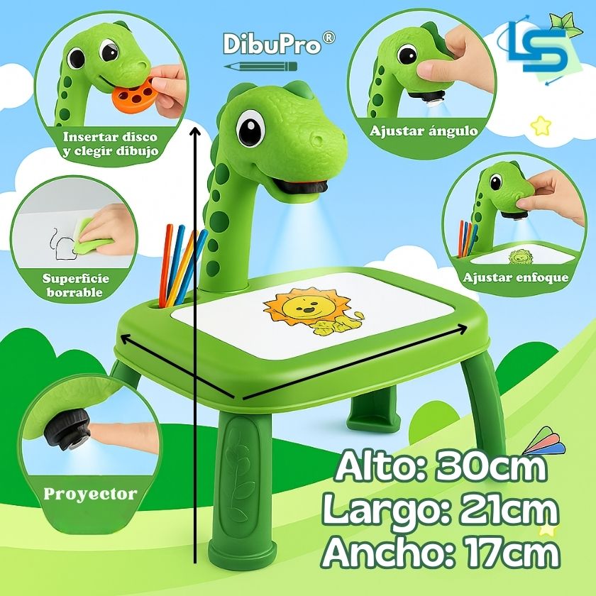 👉 Incluye mesita, proyector, diapositivas con dibujos, marcadores y cuaderno.